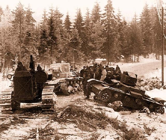 但是这场战争发生在芬兰的主场,芬兰军队既熟悉当地的环境也是保国卫国的一方,虽然面对着强敌但士气还是高涨的。当时正值寒冬战场被厚厚的大雪覆盖,芬兰军队早早就在森林中布置好了大炮阵地,还使用雪橇与麋鹿运送军用物资,而数量众多的苏军虽然拥有大量的坦克与火炮,还有机械化运输工具,但是在雪地中却无法发挥出应有的威力,甚至连补给也非常困难。当这些深陷雪地里的机械化工具耗完燃料也就是个掩体而已。为了让苏军能够按计划推进,于是就脑洞大开发明了一个新装备“步兵坦克”,其实就是雪橇加盾牌的组合。