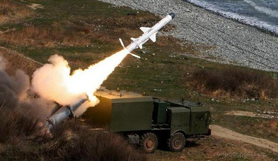 俄专家介绍,俄罗斯岸基反舰导弹一直处于世界领先位置,以“舞会-E”为例,每套系统包括4辆发射车、2辆指挥车、4辆运输车和1辆通信雷达车,其中每辆发射车可以齐射8枚Kh35“天王星”反舰导弹,一套“舞会-E”能够一次性发射32枚反舰导弹,此外还有32枚备弹可以进行二次打击。Kh35反舰导弹最大射程为130公里,速度为0.8马赫,携带150公斤高爆炸药战斗部,采用惯导+末段主动雷达制导方式,掠海攻击能力出色,采用饱和攻击模式时,对敌方的舰队威胁较大。