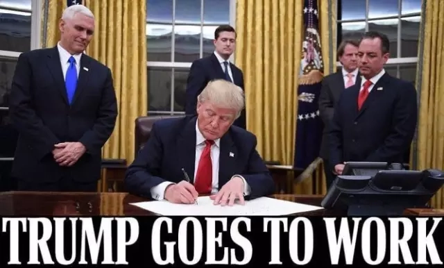 他在大批记者的见证下,第一时间在白宫椭圆形办公室签署第一道行政命令,叫停了“奥巴马医保”(Obamacare)计划。