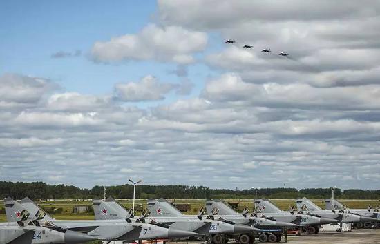 俄罗斯防空军不得不做出强硬的姿态作为回应。5架米格-31在远东地区领空20000米高空编队飞行,速度超过2.2马赫,飞行时间长达三个多小时。