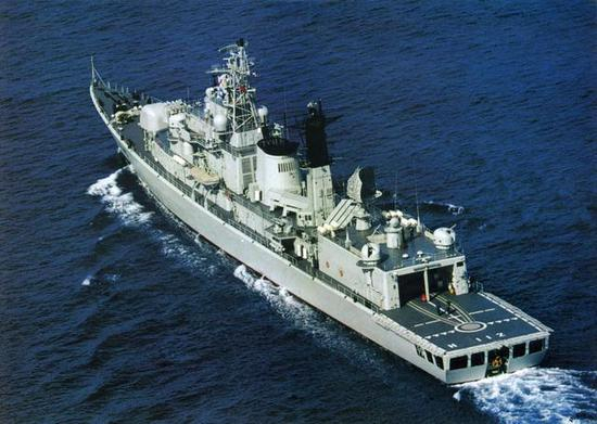 中国在亚丁湾的护航编队堪称豪华,052导弹驱逐舰都上阵了,当然意图很明显,除了维护亚丁湾海域航船的安全外,更多的是锻炼编队的远洋航行协同作战能力。上图是哈尔滨号导弹驱逐舰,属于052型,论辈分是现在052D驱逐舰的老大哥了,不过从外观上可以看出相对于052D该型驱逐舰的集成化差了很多。