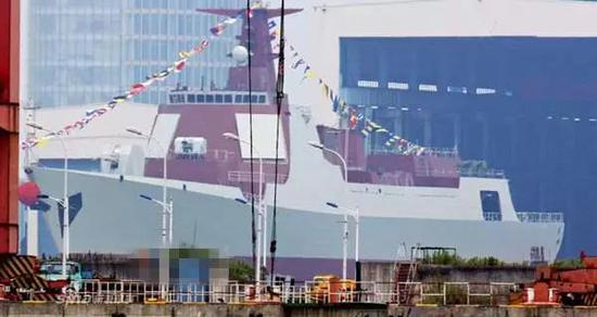 近日,有网络图片显示,大连造船厂制造的第一艘,也是总计第九艘052D已经下水舾装,进度喜人,预计2018年初可以服役。
