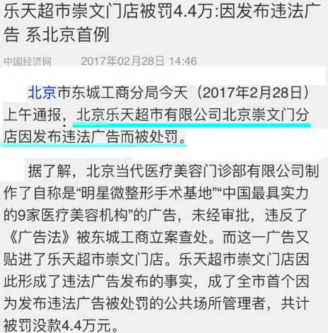 北京市乐天超市崇文门分店因发布违法广告而被处罚