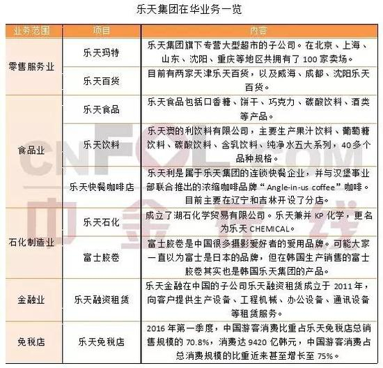乐天集团是韩国著名财阀,业务领域涉及零售、食品、旅游、石化地产及金融等多个方面。据悉,乐天集团在华事业占集团总体的比重较大,作为韩国免税店旗舰的乐天免税店,其整体购买额70%来自中国客人,远高于日本及韩国本土游客消费额。