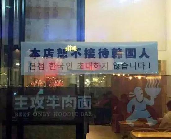 图为3月2日,中国当局和官方媒体们都出面强烈谴责在韩半岛部署萨德时,北京某饭店张贴了“本店恕不接待韩国人”的告示。(图片来源:韩联社)