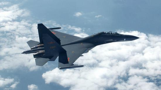 (美军飞机拍摄的我国海军歼-11BH重型战斗机)