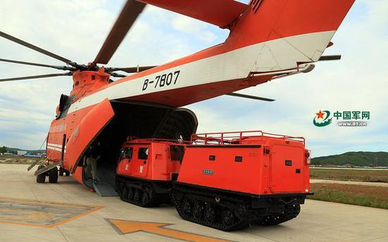 B-7807号米-26机舱可以容纳JM8型全地形车(图片来源:中国军网)