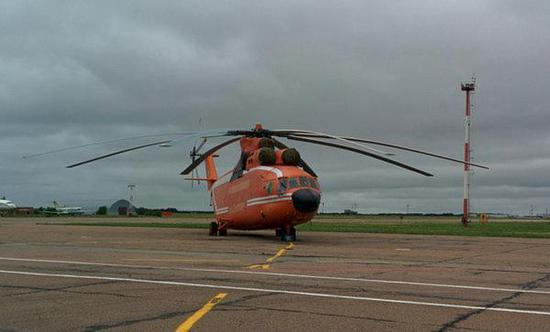 米-26型直升机是目前世界上在役最大的一型运输直升机。米-26最初设计是为取代米-6型大型直升机,于1977年12月14日设计定型,1980年服役。米-26机身长度40.025 米,旋翼直径 32米,机身高度8.145米。最高速度295公里/小时,巡航速度255公里/小时,正常起飞重量49.6吨,最大载重20吨,最大起飞重量达到56吨,这个重量相当于飞行的M1A1型坦克。