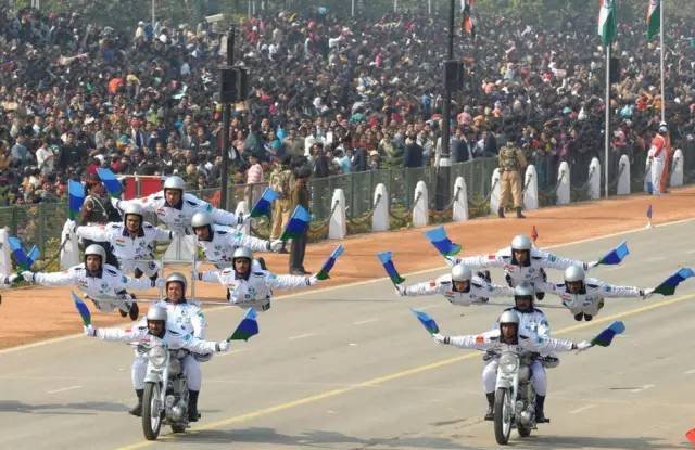 最上面那个很像猴哥啊,千里眼啊,火眼金睛有没有?瑜伽练的好,果然还是很重要啊!按照印度这样的运兵能力,30辆摩托车就能运输一个营的兵力啊!不可小觑,不可小觑,万万不可小觑!而且,这种摩托车阵型,可以360度,全方面无死角攻击形态,不管敌人从那个方向出现,都能灵活应对!不过,也有一个致命的弱点,万一被炮弹击中,会不会翻车啊?一波团灭,就惨了哦!