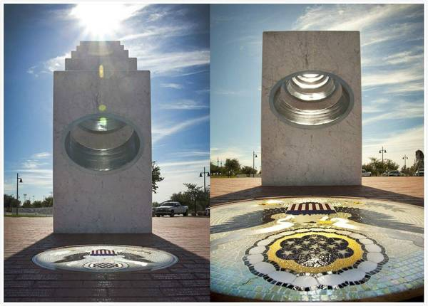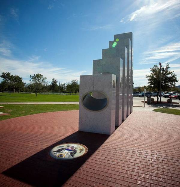 这里的退伍军人纪念碑是由五块高低不同的杯子组成的,他们分别代表了陆军、海军、空军、海军陆战队和海岸警卫队这五个不同的军种,也象征着美国的军队团结一致。在设计师的精妙设计下,每年到了11月11日早上的11点11分左右,太阳光展会正好穿过五座纪念碑上面的孔洞,在地面上正好投影出一枚勋章,看起来非常的不可思议。