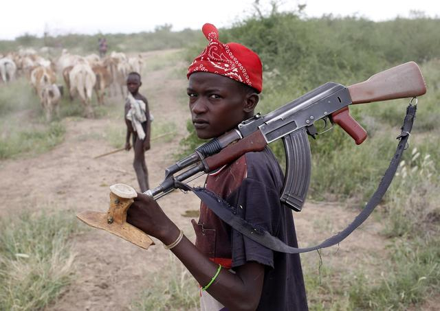 说到枪支,大家首先肯定会联想到军队,不过在非洲东部肯尼亚的原始部落中,这里的居民几乎人人都有至少一把枪,就像我们每个人都至少会有一部手机一样,这不,出去牧羊和牧牛时也不会忘记扛上枪。