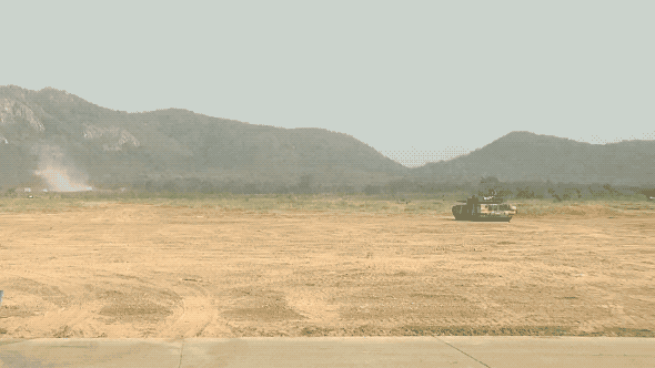 在火力展示方面,从视频上看VT-4坦克是进行静对静和静对动目标射击。由于VT-4坦克已经完全装备了3代火控系统,因此在炮长上反稳像式瞄准镜、带夜视和稳像能力的车长独立周视镜以及多种传感器的帮助下,VT-4不但对静目标是百发百中,就是对付动目标也不在话下,或许在下一次泰国陆军开放日,我们能看到难度更高的行进射击的场面。
