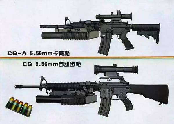 CQ-A缩短了枪管,将枪托改为了6段伸缩枪托,把一体化机匣和提把改为了可分开模式,提把上还安装了皮卡汀尼轨道,便于加装各类战术附件。护木内部新增了铝制隔热罩(所以变粗了),还和原版M4一样预留了安装M203榴弹发射器的接口。