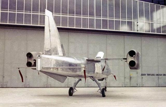 实际上,最早的垂直起降战机是德国人研制的VJ-101C战机,这种战机可以在不俯冲不加速的情况下突破音速。整体机身呈流线型,全长15.7米,翼展6.61米。这款VJ-101C战机整体是比较轻薄的,重量不大。其发动机安装在中部机翼上,每个机翼上都有一个吊舱,吊舱内装有发动机。据悉,该战机的发动机用的是英国劳斯莱斯的RB145涡扇发动机。由于种种原因,德国这款垂直起降战机并没有多少实际应用,如今我们只能在博物馆中见到它。