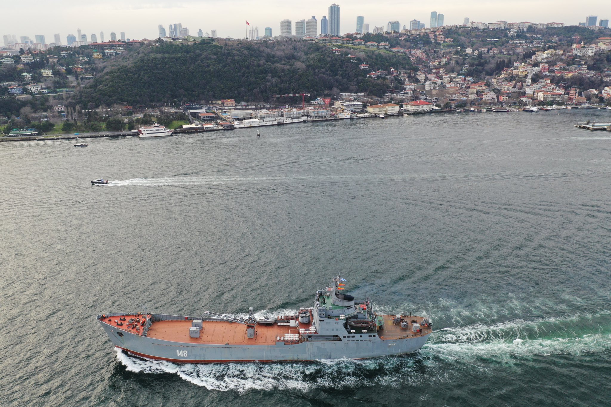 3月3日,据俄罗斯社交媒体拍摄的照片显示,一艘“蟾蜍”级大型坦克登陆舰从黑海出发,通过土耳其控制的博斯普鲁斯海峡,前往叙利亚塔图斯的俄罗斯海军后勤补给站。这是数天里面第二艘通过博斯普鲁斯海峡的俄军坦克登陆舰,上周一艘“鳄鱼”级坦克登陆舰已经通过博斯普鲁斯海峡,并抵达叙利亚。