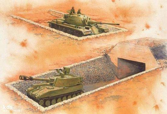 别以为有装甲就不用防御工事了,此乃美军版坦克掩体&自行火炮掩体示意图