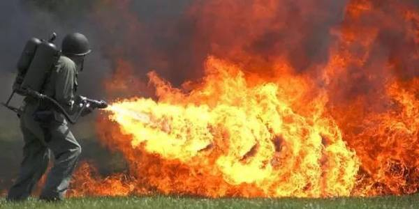 在越南,美国人使用凝固汽油烧尽整片树木和大量的林区,以清除敌方遮蔽物。凝固汽油通过航空炸弹、背包和机械化的火焰喷射器,引燃的炸药包发射出去。在降落时,凝固汽油能够使人的身体造成灼伤-伤者经常由于疼痛震荡而死亡。