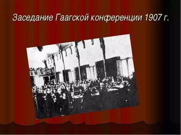 两次国际会议(第一次是在1899年召开) 确定了一系列禁止使用的武器和对抗双方能够使用的战争方式:可扩张的子弹、空中气球炸弹、带毒气的炸弹。