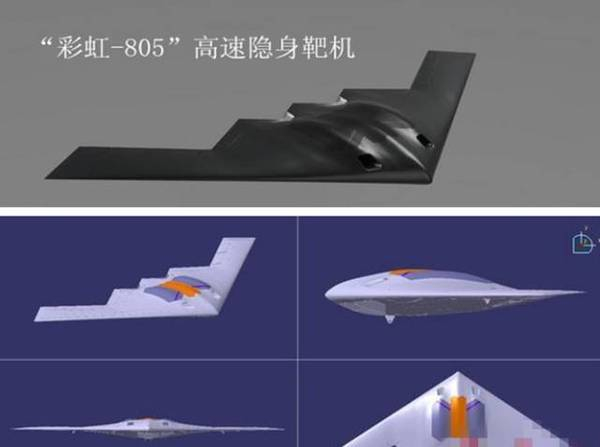 由于现代隐身技术的发展,轰-20远程战略轰炸机采用雷达隐身设计是极有可能的。而此前,中国已经开发了两款隐身无人机,其外形极为酷似隐身轰炸机的缩小版。一款是“利剑”无人机,另一款则是“彩虹-805”高速无人隐身靶机。“利剑”无人机采用涡扇发动机,在隐身化、智能化和精确化上,都具有着突出的特点。而“彩虹-805”高速隐身靶机则与美国B-2轰炸机极为相似,主要用于中国进行模拟反隐身打击。这两款无人机,在技术上,都对轰-20的研制有着重大的参照作用。