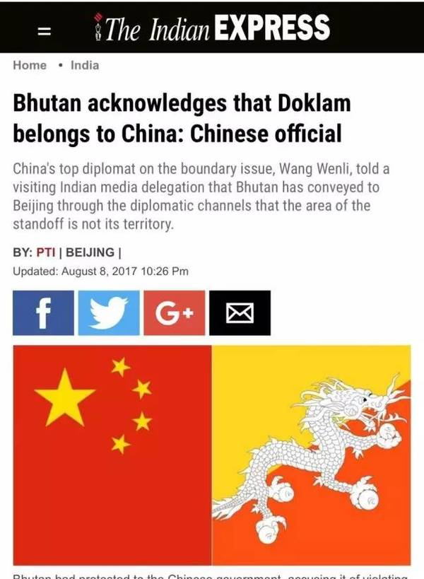 目前“不丹承认洞朗非其领土”的消息已被《印度时报》、《印度快报》等多家印度主流媒体转载。