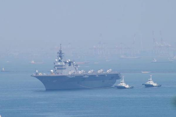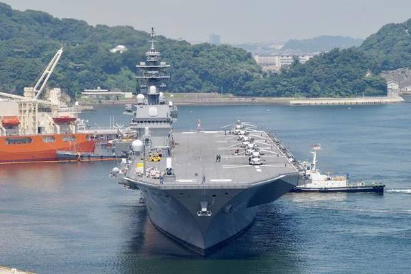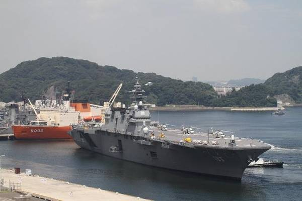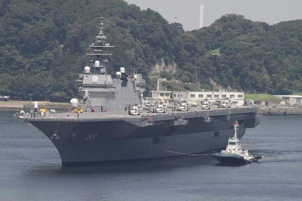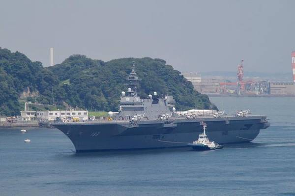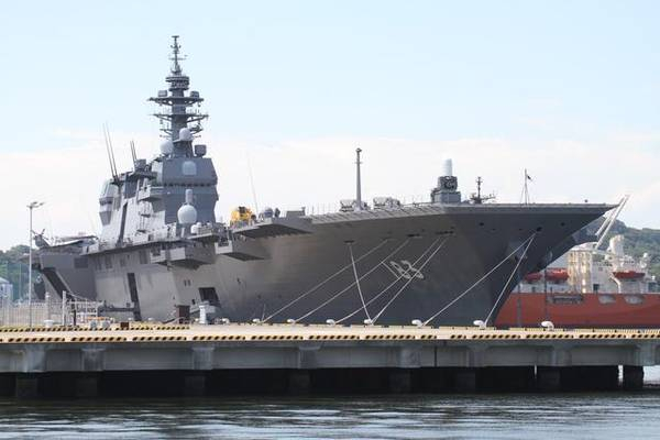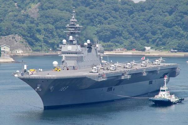 正在靠港的“出云”号直升机航母。按照日本海上自卫队最初的要求,“出云”级直升机航母仅搭载7架SH-60K反潜直升机和2架搜救直升机。不过,最近的配置已经发生了很大的变化。除了用于反潜和扫雷之外,“出云”号也可以当作运输舰使用,能搭载400名自卫队员和50台3.5吨的卡车。