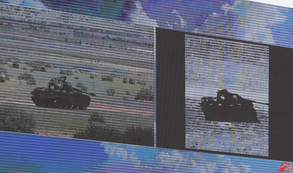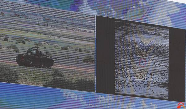 左图是作为目标靶的69式坦克;右图是光纤制导的显示图像。