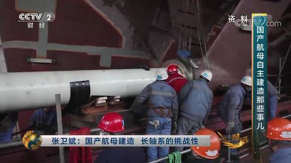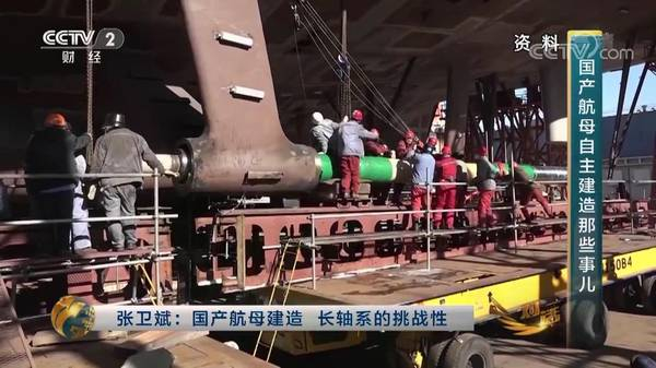 图为国产航母轴系安装。中船重工大船集团副主任张卫斌透露,国产航母长轴系的成功安装,证明中国人建造水平比国外还要强。