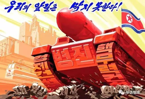 朝鲜上周公布的海报和抗议口号。上面写着:“没有人能阻止我们前进!”