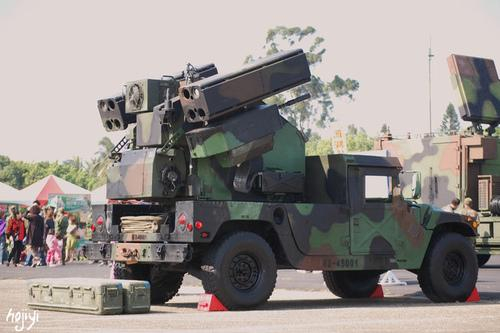 先来看毒刺防空导弹,毒刺导弹是一型便携式野战近程防空导弹,台军进口的该导弹有三种不同发射载具,第一种是DMS双联发射架,该发射架包括一个带座位的支架,一部带夜视能力的光学观瞄设备和一部敌我识别器,它主要装备外岛部队和海军陆战队,比如澎防部防空连,东指部防空排,陆战旅防空连等。第二种载具就是复仇者防空系统,该系统以悍马车为底盘,两侧有两个4联装的发射筒,不过这个发射筒内装的不是毒刺导弹的裸弹,而是一个完整的便携式发射器,在车辆被击毁后,还可以拿出来继续使用。复仇者主要装备陆军军团下属的炮指部防空营,战时加强给各旅。第三种载具就是陆航的阿帕奇武装直升机,台军为它配套进口了空空型毒刺。
