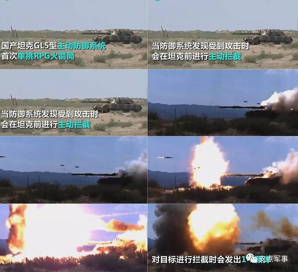2017年8月16日,在内蒙古举行的“装甲与反装甲日”特别活动日上,官方展示了一段中国国产“GL-5型主动防御系统(简称APS)”拦截89式120毫米反坦克火箭弹的视频,这是国内该类系统的首次公开。