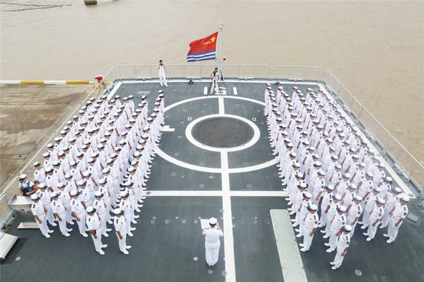 被誉为“海上铁拳”的某驱逐舰支队位支队点兵广场举行纪念建军90周年隆重升国旗仪式 ▼