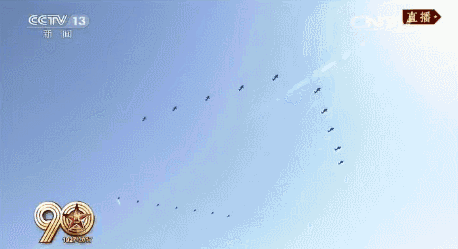 为了象征人民军队走过90年光辉历史,24架直升机汇成“90”字样。