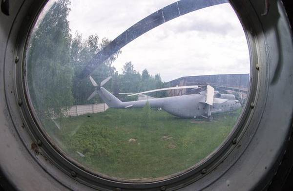 从米-10直升机的机舱内看米-6直升机。米-10直升机是在米-6的基础之上设计的,哥俩一对比,这身高就成了武松之于武大郎了。这里提个小细节,米-26直升机和米-6直升机很容易弄混淆,但只需记住一点米-26是没有那对短翼的。