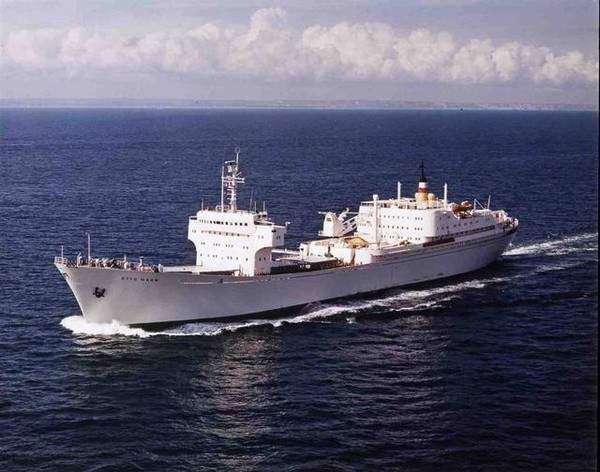停靠在码头旁边的“奥托•哈恩”号核动力轮船。该船总共有63名船员,另外最多还可以搭载35名科研人员。