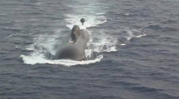 印度在打捞沉没的潜艇时的场景