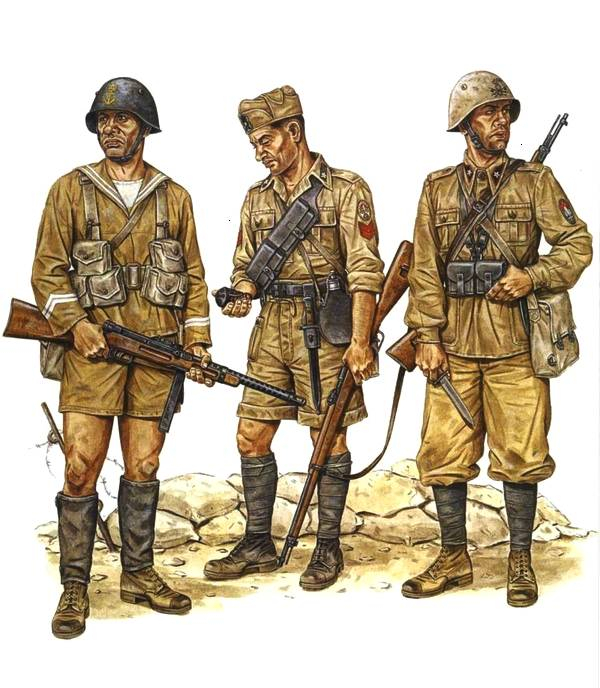 1940年,意大利1个陆军师就只有2个步兵团和1个炮兵团,人员12900人。装备270挺轻机枪和80挺重机枪,还有30门81毫米迫击炮,126门45毫米小迫击炮,8门30毫米高射炮。