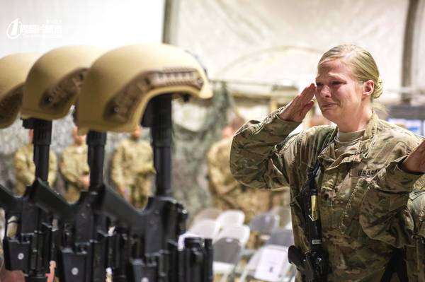 图:美军士兵为在阿富汗阵亡的美军士兵举行哀悼仪式