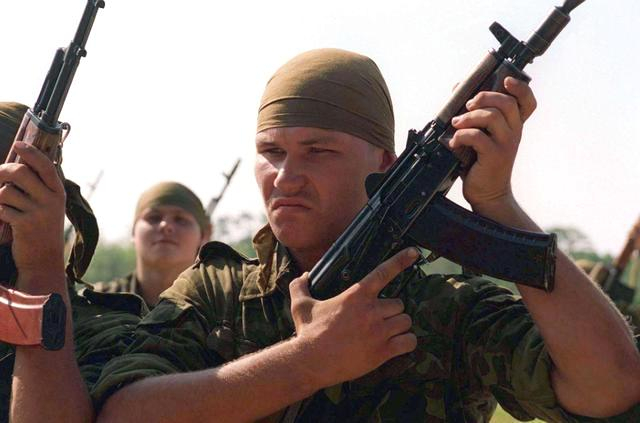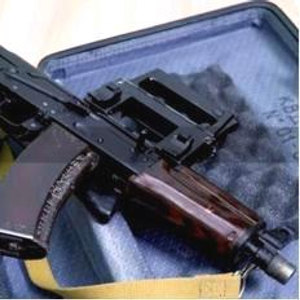 这种手提箱外观上与我们常见的手提箱没有任何不同,且身材短小,没有人会以为里面有只冲锋枪(虽然在这个时代好像没什么人带手提箱出门了,又不是黑帮片)。这款手提箱冲锋枪代号“护卫”,主要是为俄联邦安全局FSB的特工和VIP保镖设计,主要用来进行暗杀或护卫任务。内部的冲锋枪是非常著名的AKS-74U冲锋枪(俄罗斯方面称之为短突击步枪)。该冲锋枪与AK-74M突击步枪基本结构相同,采用卡拉什尼科夫一贯的机匣结构设计。该枪采用的子弹与AK74一样,为华约制式M74型5.45x39mm小口径步枪弹。该枪的枪管相较于全尺寸的AK-74缩短至206mm,全枪长为720mm(不折叠),折叠状态下的长度仅为490mm。在拆卸了枪口消焰器后长度更是缩短至450mm,还不如一台电脑长。