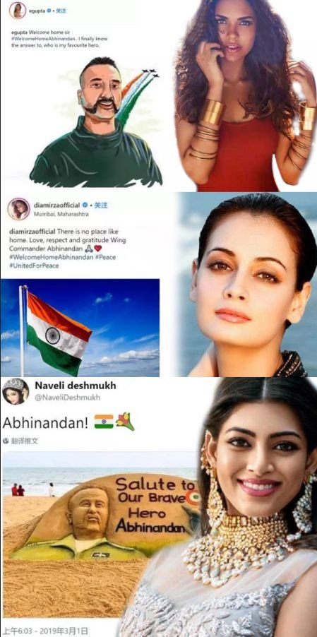 就像事先商量好了的一样,多名印度明星和印度环球/世界小姐突然向阿比纳丹发起“攻势”,在社交媒体上集体向他表白。