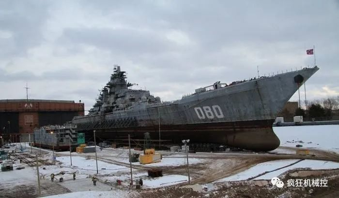 最近,俄罗斯媒体报道了“基洛夫”级核动力导弹巡洋舰三号舰——“纳希莫夫海军上将”号的最新状态。这艘巡洋舰从2012年开始进坞大修改装,8年过去,还是满身脚手架的躺在北德文斯克造船厂。