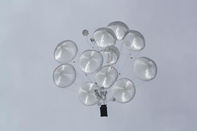 除“人车一体”空投技术外,科切特科夫还公布了俄罗斯在重型货物伞降系统领域的研究成果。和“瓜田-U”伞降系统一同研制成功的还有1.5吨级和4吨级两款高精度定点货物伞降系统,这两款系统装备了可控式滑翔伞,可通过飞行控制系统对其降落地点进行操控,大幅缩短空投装备与人员集结时间,提升伞降突袭的突然性和战时战场应急补给效率。