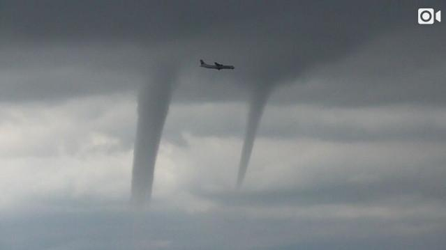 俄罗斯黑海沿岸近日天气不稳定,过去2周内龙卷风频繁生成,有不少飞往索契(Sochi)的航班因此受影响而延迟,或是迫降邻近机场。在索契外海甚至一次出现多个龙卷风,29日有民众拍下,当时有一架客机正好穿过附近空域准备降落,飞机未闪避而是直接从3个龙卷风旁边飞过,惊险画面让人看了捏了一把冷汗,所幸最后顺利平安落地。