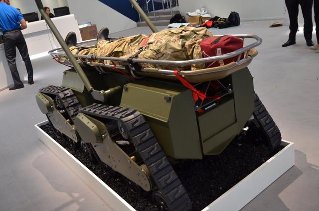 近日,在2017英国(伦敦)国际防务展(DSEI 2017)上,英国BAE系统公司展出了一款小型无人坦克,代号“Ironclad”。据BAE系统公司介绍,Ironclad采用模块化设计,可自由组合,在短时间内就能根据任务搭载不同的载荷。图为展会现场展出的Ironclad坦克,两辆Ironclad进行简单组合后就能对伤员进行运输。