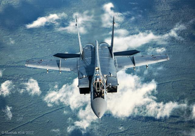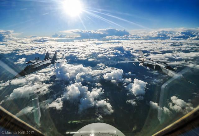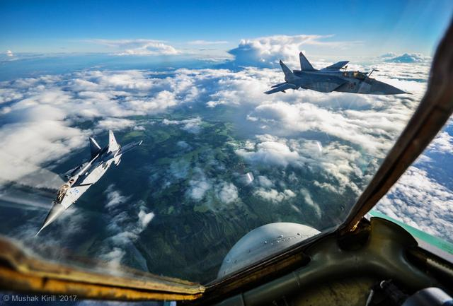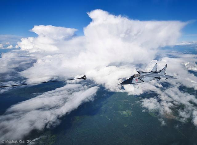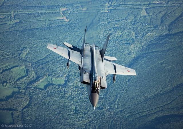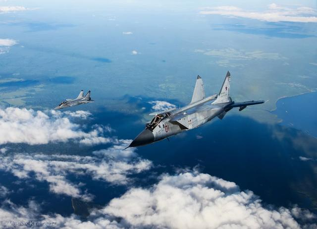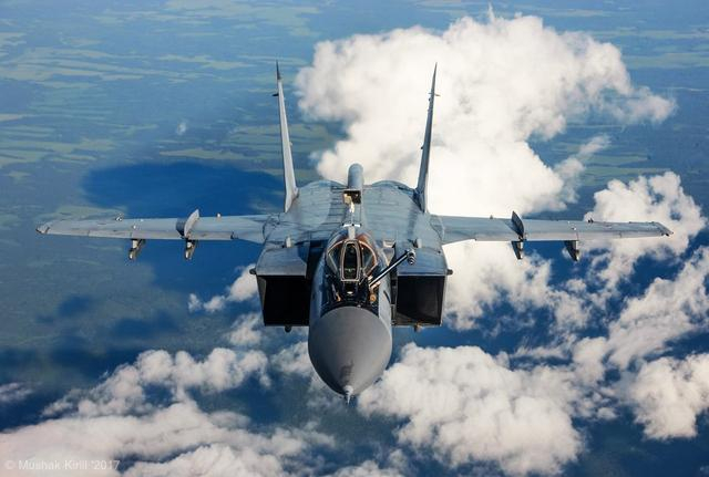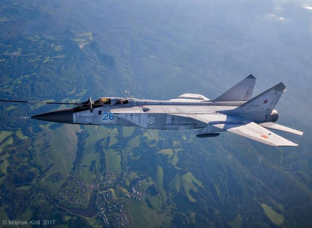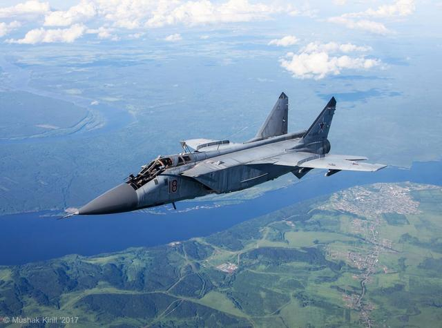 图为俄罗斯网友拍摄的米格-31BM在进行飞行训练的美照。