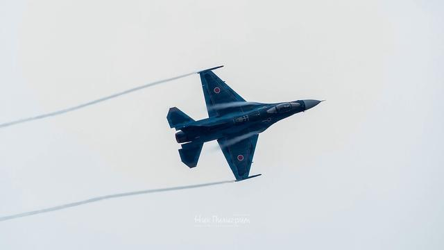 F-2战机能够挂载的武器非常多,仅导弹和炸药的外挂点就有11个,能够装备2枚AIM-9导弹或是三菱公司的AAM-3型空对空导弹,3枚反坦克制导炸弹以及4枚ASM-1型或ASM-2型反舰导弹。此外,F-2战机还装有一门20毫米的机关炮可用于近距离的火力支援。图为日本F-2战斗机进行飞行表演。