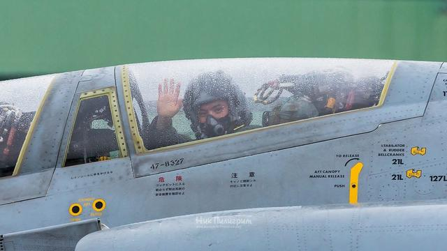 图为日本航空自卫队飞行员准备驾驶F-4战斗机进行表演,在与观众挥手致意。