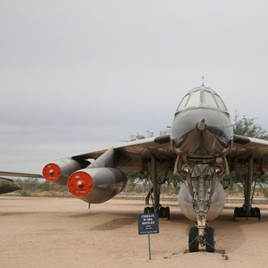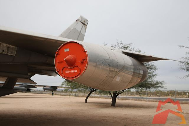 图中这架B-58A保存在亚利桑那州图森的皮马航空航天博物馆。B-58轰炸机拥有太多的独特之处,比如该机分明是轰炸机,结果给人的感觉却像一架放大版的战斗机,还采用了类似战斗机一样的座舱布局。不过,该机前后串列布置的三个单独座舱也堪称是绝版了。