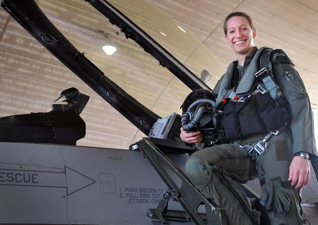 图为美国空军中世界上唯一一位也是第一位F-35战机女飞行员。