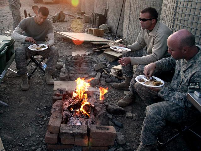 即使在阿富汗较小的战斗前哨,感恩节晚餐也是必不可少的。