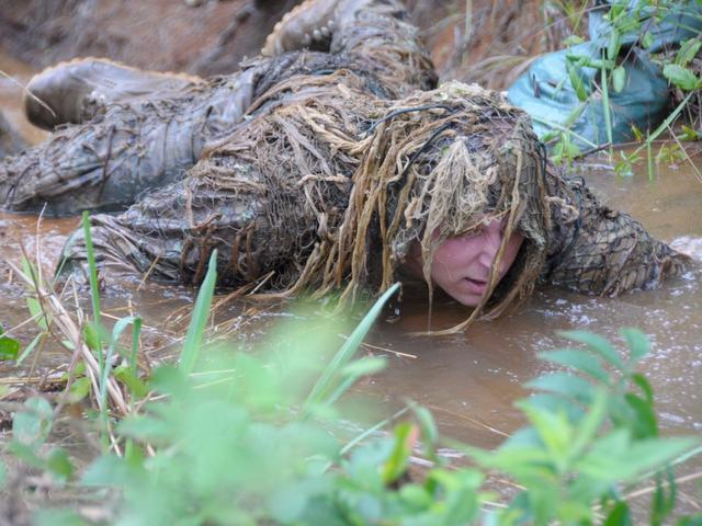 狙击手穿着吉利套装通过高高的草地后需要在一个充满水,泥,岩石,植被的沟渠爬了数百米;过于严苛困难和肮脏的训练条件让狙击手的数量十分稀少。